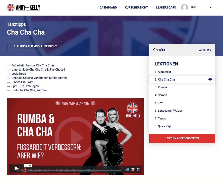 Die Onlinekurse sind aber auch die ideale Unterstützung zum Präsenzkurs bzw. bestens geeignet, um dich auf die nächste Tanz-Leistungsabzeichen-Prüfung deiner Tanzschule vorzubereiten.